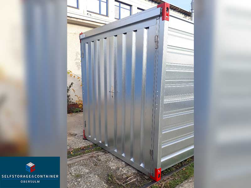 Die Lagercontainer sind aus 0,75 mm verzinktem Trapezblech gefertigt. Die Tragprofile sind aus 2 mm verzinktem Blech gefertigt. 35 mm gehobeltem Nut- und Federholzboden.