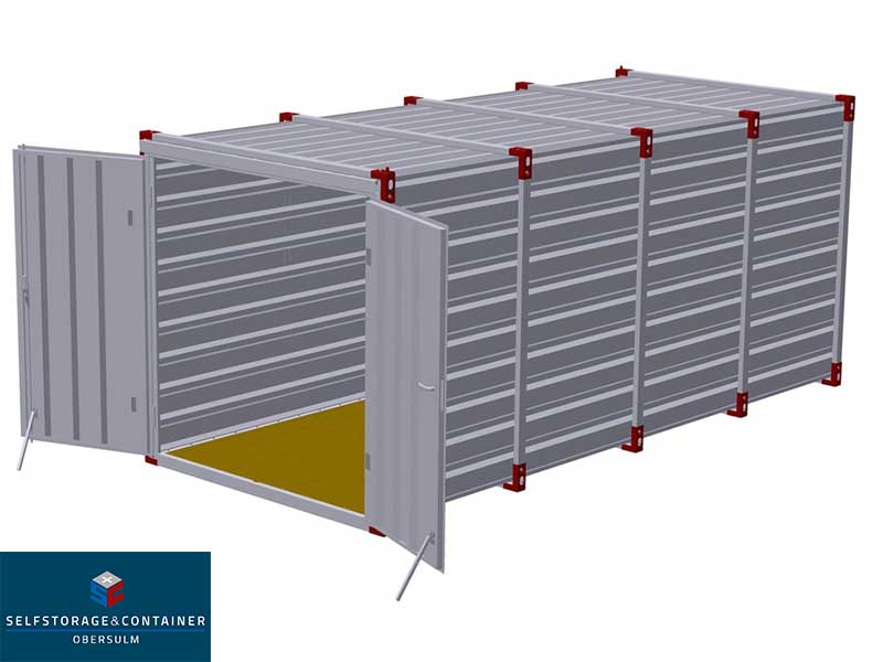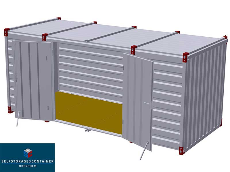 Die Container sind mit Einzeltür und Doppeltür mit Klinke und Zylinder-Schloss in Stirn- oder Längsseite erhältlich. Das lichte Maß der Doppeltüre ist 1930×1930 mm.